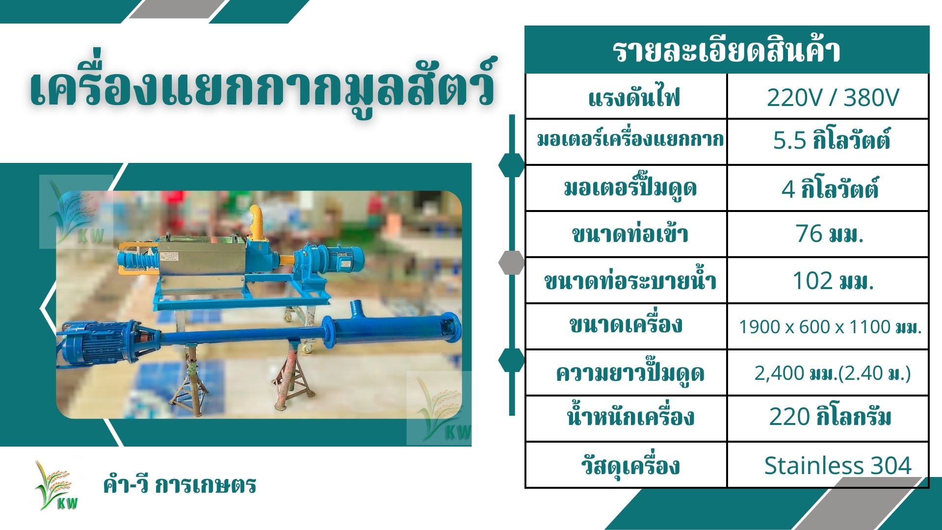 เครื่องแยกกากมูลสัตว์เป็นเทคโนโลยีที่มีความสำคัญในการจัดการของเสียจากฟาร์มสัตว์ โดยเครื่องมือนี้สามารถแยกกากออกจากของเหลวในมูลสัตว์ได้ ซึ่งช่วยลดปริมาณและน้ำหนักของเสียทำให้การขนส่งและการกำจัดมูลสัตว์ง่ายขึ้น นอกจากนี้ กากที่ได้จากการแยกสามารถนำไปใช้เป็นปุ๋ยหรือสารปรับปรุงดิน หรือแปรรูปเป็นปุ๋ยอินทรีย์ วัสดุรองนอนสำหรับสัตว์ได้ เหมาะสำหรับ ฟาร์มวัว ฟาร์มหมู ฟาร์มไก่